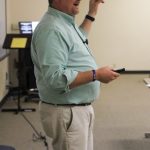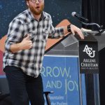 - Dr. Randy Harris raises his hands as he passionately speaks to his audience. (Photo by Claire Shipley)