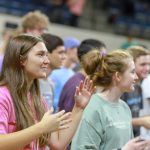- Students follow the hand movements of “Take the Lord with you.” (Photo by David Mitchell)