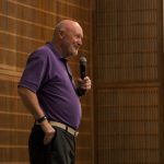 - A speaker at Summit smiles at his audience. (Photo by Riley Fisher)
