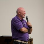 - Dr. Steven Moore laughs at a joke during his Summit keynote speech. (Photo by Megan Holley)