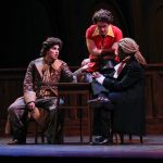 - Lumiere, played by Tré McLeod, prepares Belle, played by Lauren McDonald, for dinner. (Photo by David Mitchell)