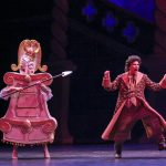 - The animated objects celebrate as Belle, played by Lauren McDonald, joins them for dinner. (Photo by David Mitchell)