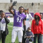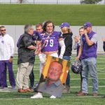 - Senior punter Simon Laryea greets fans before the game. (Photo by David Mitchell)