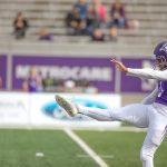 - Senior punter Simon Laryea sends the ball down the field. (Photo by David Mitchell)