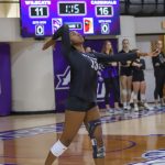 - Junior middle blocker Lorin McNeil serves the ball. (Photo by Adelin Blackmon)