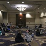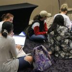 - Students wait for their turn for various stations at the Cabinet’s spa day in the Hunter Welcome Center. (Photo by Riley Fisher)