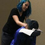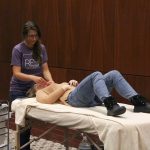 - A group of students studies together while they wait to get a massage. (Photo by Riley Fisher)