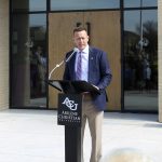 - Abilene Mayor Anthony Williams prays over the new clubhouse. (Photo by Riley Fisher)