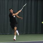 - Dimitrios Azoidis, freshman financial management major from Limassol, Cyprus, plays in doubles. (Photo by Meghan Long)