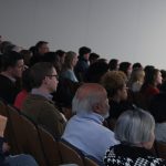 The audience watches a video about Abilene during the Jim Crow era. (Photo by Meghan Long)