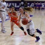 - Senior guard Breanna Wright makes her way to the basket. (Photo by David Mitchell)