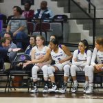 - Senior guard Dominique Golightly returns to the bench after fouling out of the game. (Photo by David Mitchell)
