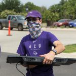 - Senior kinesioogy major from Abilene Brady Dumas moves an organizer into Sikes Hall. (Photo by Riley Fisher)