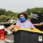 - Mya Parker, junior psychology major, carries a box from a student’s truck. (Photo by David Mitchell)
