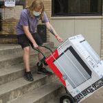 - Wildcat Week volunteers bring crates up to the third floor of Mabee Hall. (Photo by Riley Fisher)