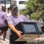 - Junior nursing major from Lufkin Allison Skelton carries a freshman’s microwave into Edwards Hall. (Photo by Riley Fisher)