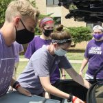 - A group of resident assistants and Wildcat Week volunteers retrieve a freshman’s belongings from his trunk. (Photo by Riley Fisher)