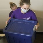 - Two Wildcat Week volunteers share the weight of a heavy box as they walk into Edwards Hall. (Photo by Riley Fisher)