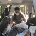 - A Wildcat Week volunteer carries clothing into Nelson Hall. (Photo by Sydney Varner)