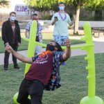 - Students at the Trojans rush play bean bag toss. (Photo by David Mitchell)