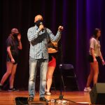 - Brian Imbus, a hypnotist, introduces himself to the crowd. (Photo by David Mitchell)
