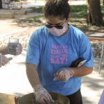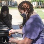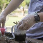 - A student plants her succulent in her pot. (Photo by Riley Fisher)