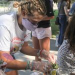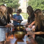 - Students finish off their succulents with colored rocks and umbrellas. (Photo by Riley Fisher)