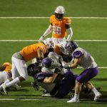 - A Wildcat pushes past two Miners as he runs toward the end zone. (Photo by Riley Fisher)