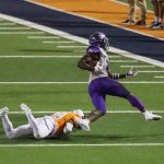 - Sophomore wide receiver Jordan Brooks-Wess chases down UTEP’s freshman kicker and punter Alejandro Chavarria to protect his teammate. (Photo by Riley Fisher)
