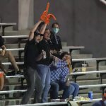 - Two Miners fans dance for the cameras. (Photo by Riley Fisher)