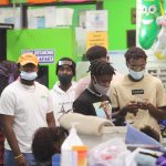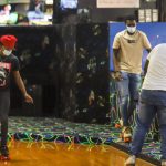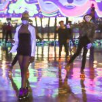 - Masked students roller scate to energetic music. (Photo by David Mitchell)