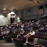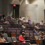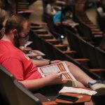- Students gather in Cullen Auditorium for a bingo game. (Photo by Meghan Long)