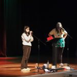 - Libby Boyd, sophomore communication disorders major from New Braunfels, announces the second half of the event. (Photo by Meghan Long)