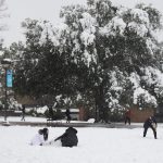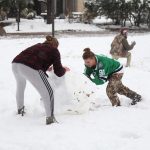 Several inches of snow brought students outside to build snowmen, sled and spend time together Sunday despite frigid temperatures. Continued freezing temperatures caused ACUPD to cancel all synchronous classes and pledging activities on Monday.