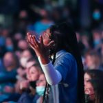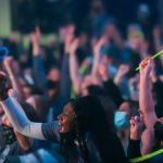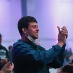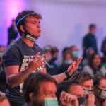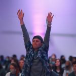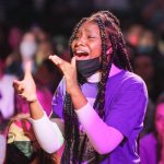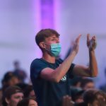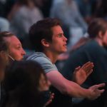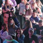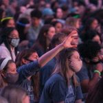 - Students sing “The Lord Bless You and Keep You” to close out the watch party. (Photo by David Mitchell)