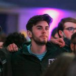 - A Wildcat fan stands and claps for his team after the end of the watch party. (Photo by Riley Fisher)