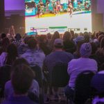 - Wildcat fans fill a room in the Abilene Convention Center to watch their team compete against the Bruins. (Photo by Riley Fisher)