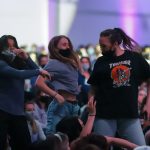 - Rows of Wildcat fans sing “The Lord Bless You and Keep You” to celebrate the end of a historic basketball season. (Photo by Riley Fisher)