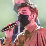 - Junior psychology major Amen Mugisha sings a solo with an a cappella group. (Photo by Meghan Long)