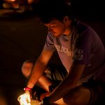 - Students hold their candles as they sing. (Photo by Meghan Long)