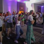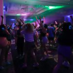 - Students dance in a line during the silent disco Saturday night. (Photo by Riley Fisher)