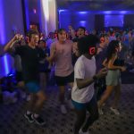 - Students participate in a line dance during the Silent Disco Saturday night. (Photo by Riley Fisher)