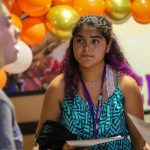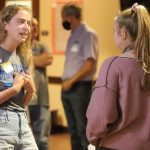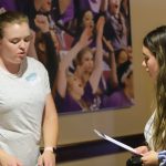 - Ashlen Pamplin, senior comunication disorders major from Abilene, talks to another student about studying in Uruguay.(Photo by Telvee Marvie)