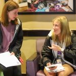 - Ashley Stirman, graduate student from Abilene, discusses the Study Abroad program with another student. (Photo by Telvee Marvie)
