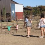 - Two students play a longhorn roping game at Denton Valley Farms. (Photo by Meghan Long)