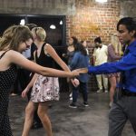 - Community members laugh while dancing the East Coast Swing. (Photo by Shelly Womack)