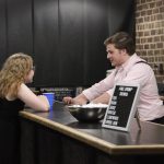 - Daniel Garton, junior biology major from College Station, serves a refreshment to Hardin Simmons student Ashley Slaughter. (Photo by Shelly Womack)