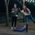 - Elizabeth Harris, sophomore advertising/public relations major from Sherman, and Carson Andrews, sophomore accounting major from Baird, play a game of corn hole. (Photo by Shelly Womack)