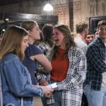 - Students chat and laugh while watching people ride the bull. (Photo by Shelly Womack)