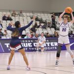 - Freshman guard Nykale Cramer shoots a three pointer. (Photo by Meghan Long)